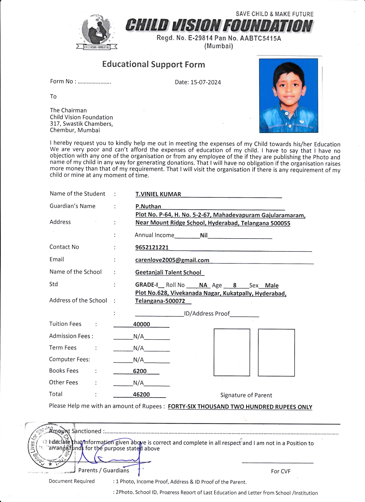 • Educational Cost AY 25-26 ₹46,200