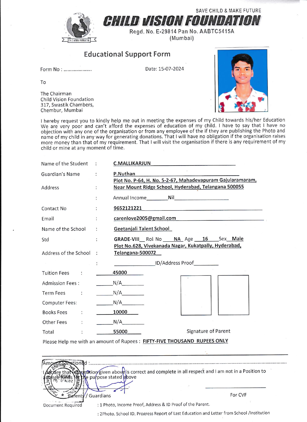 • Educational Cost AY 25-26 ₹55,000
