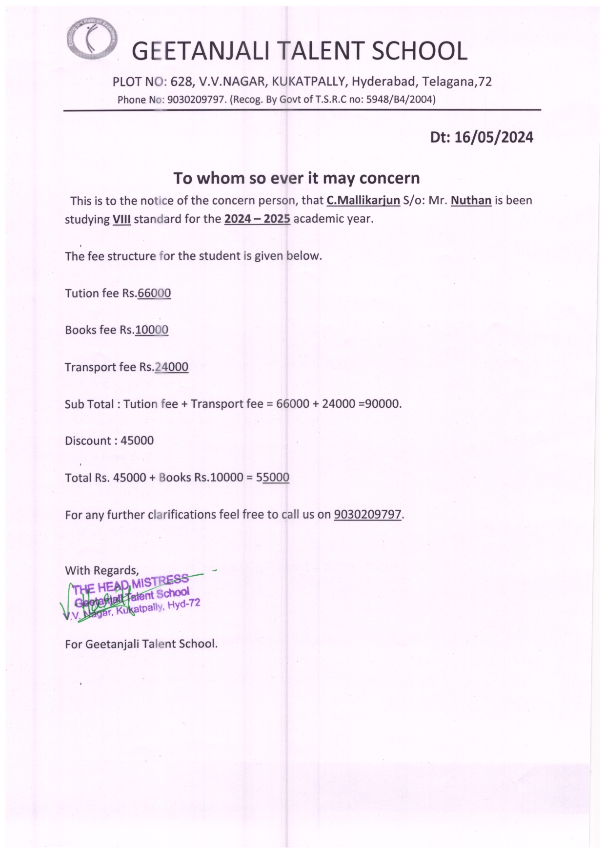 • School Name: Geetanjali Talent School